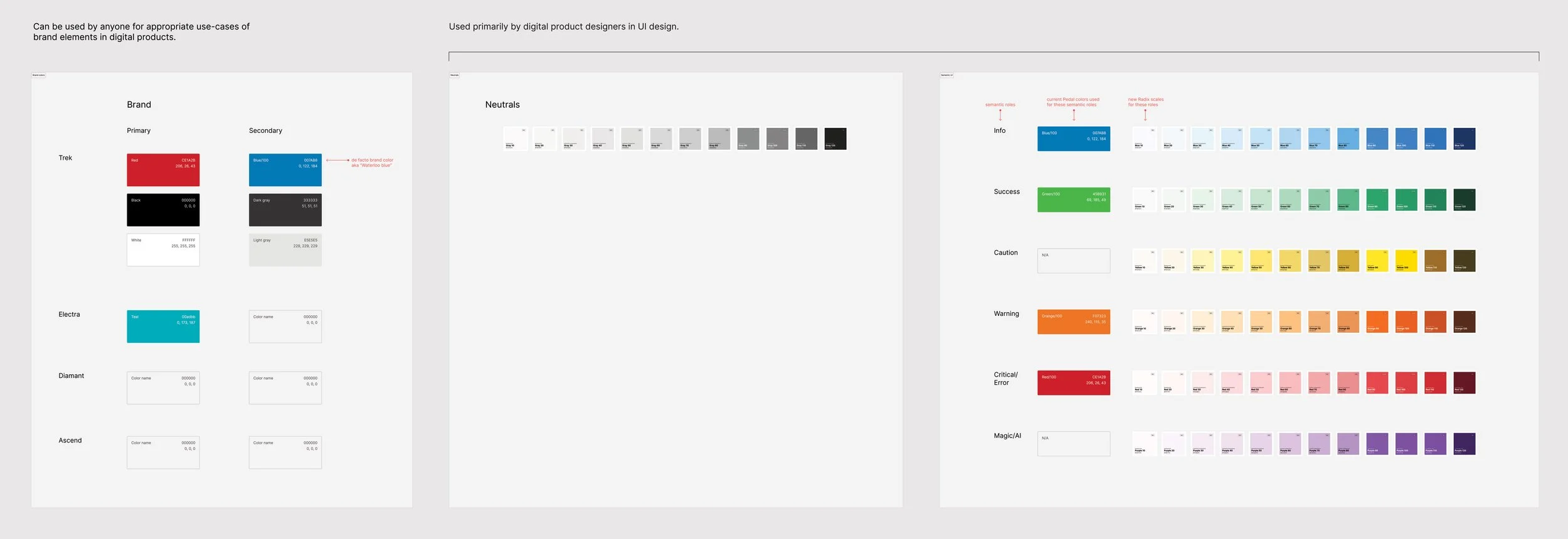 An additional step outside of just adding this color palette to our design system and the Trek Digital System, was to create a library of color variables for future design work. These variables will allow mass color changes across projects making Figma designing much more efficient.