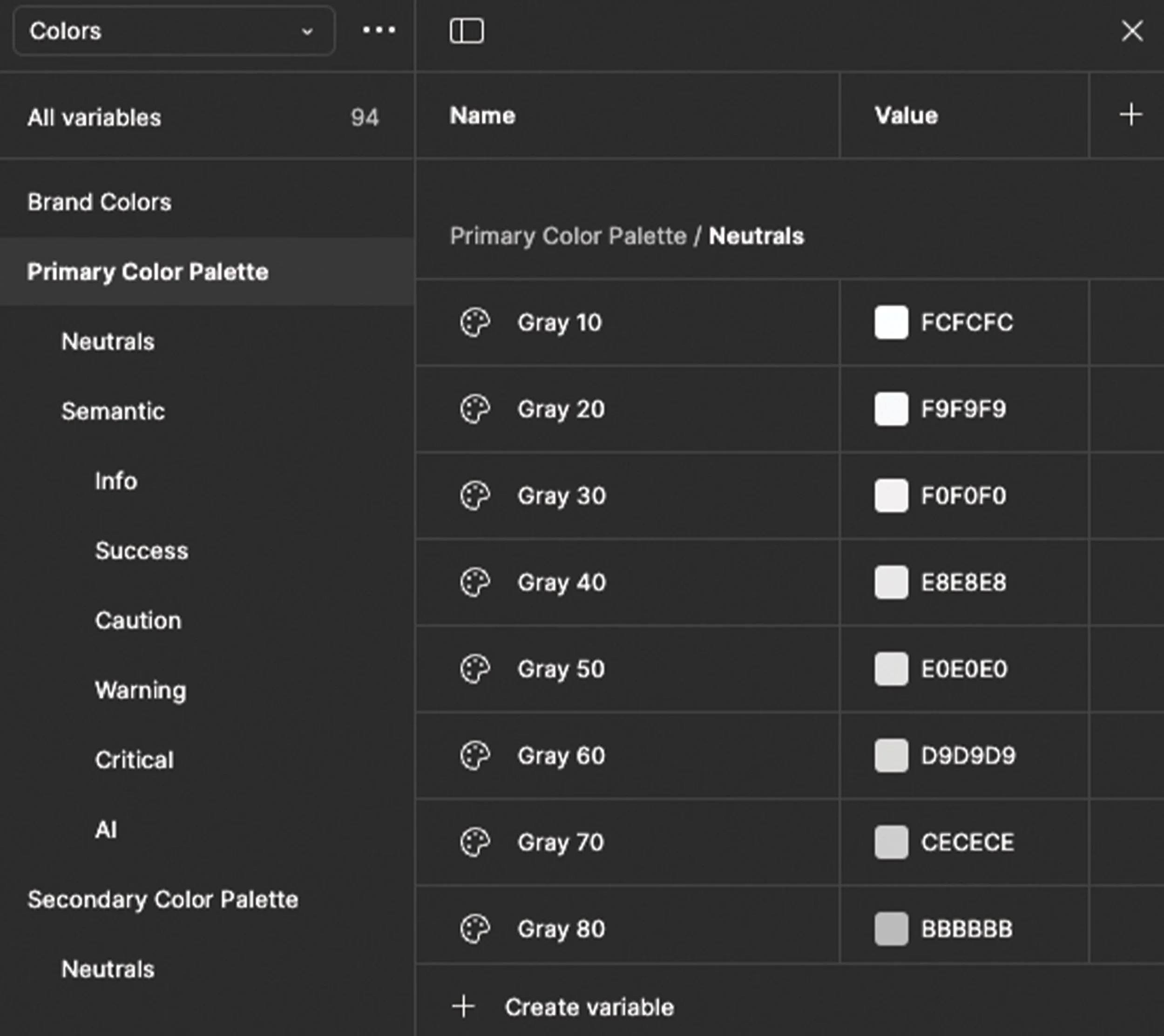 Adding color variables in Figma