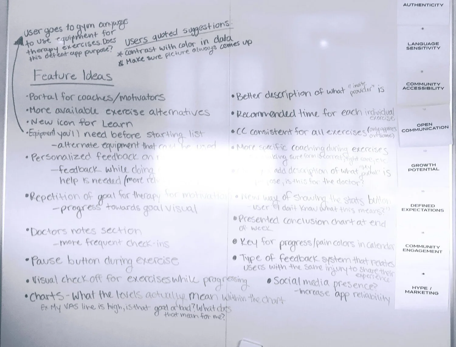 Organizing this app with the best feature set possible was very important for a successful user experience. White boarding sessions and sticky note exercises were done regularly in the early stages of the project.