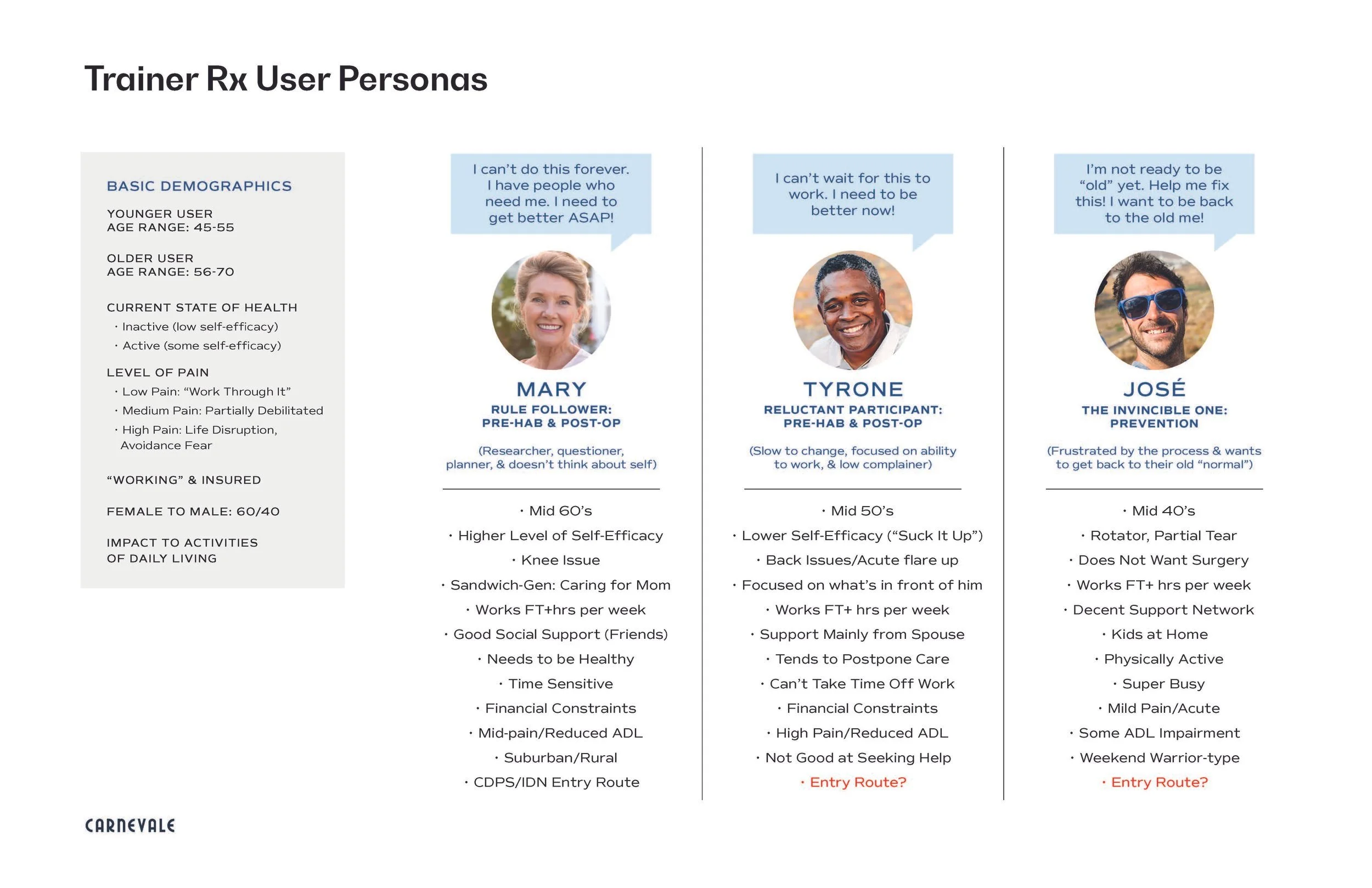 At the beginning of this process, the team and I established user personas and journey maps to begin the user experience for the new design. Not all customers using the app are at the same so understanding how they may use it and what pain points they could encounter was very important.